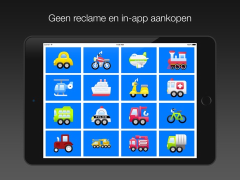 Introduce your toddler or grandchild to 32 different animals and vehicles with a total of 96 images and sounds. You can choose to learn to discover, read or spell. The application contains English, Dutch, German and French spoken texts and names, to learn both the word and the pronunciation of the animal or vehicle. In addition, the application is completely ad-free, so your toddler or grandchild can use the application safely.
