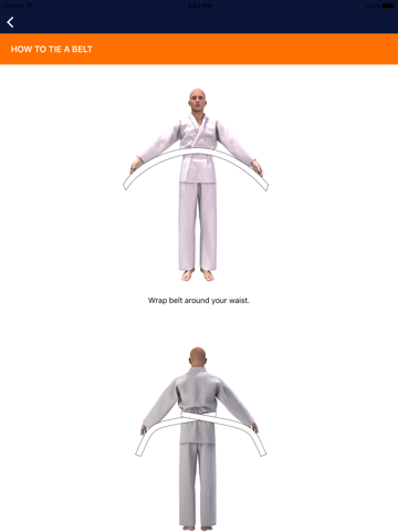 Learn how to tie a karate belt (there is more than one way to do this correctly - this app shows a common method).