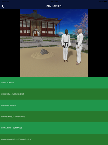 The app contains video and audio instruction of Japanese numbers, karate terminology and common karate commands.