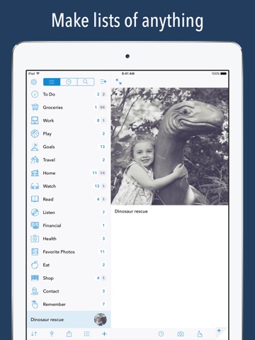 Use it to create to do lists, shopping lists, take notes, store contact information, keep track of books to read, or movies to watch... or anything else youd want to make a list for.