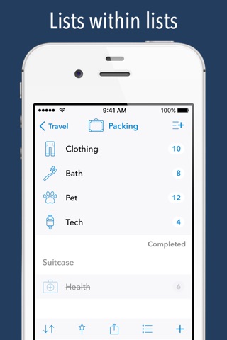 - mark items incomplete to return them to their original position in the list (this makes lists easy to reuse)