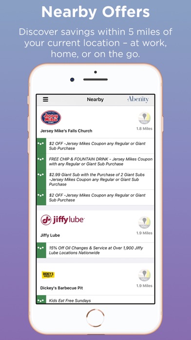Show & save mobile coupons provide instant in-store discounts at nearby restaurants and retailers. Save frequently used offers to your favorites for quick access.