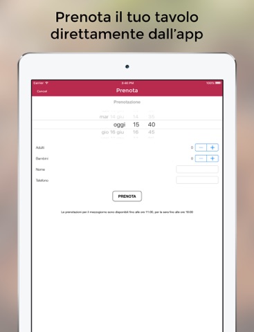 Riserva il tuo tavolo direttamente dallapp, ricevi la conferma e consulta le tue prenotazioni.
