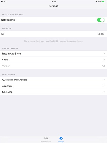 - Turn on notifications and the system will ask you every day if you have used the lens with a notification; in this way you can always keep track of their use.