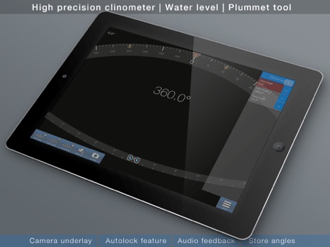 Measure angles and slopes: The most precise clinometer and digital bubble Level in your pocket. Including Flashlight + Compass + Ruler + Camera measuring - All in one handy app.