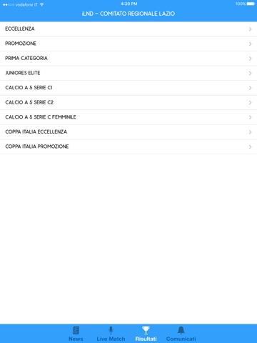 Non perderti nessun risultato dei tuoi campionati preferiti. L’app iLND-Lazio ti dà accesso a tutti i risultati di Eccellenza, Promozione, Prima Categoria, Juniores Elite e Calcio a5.
