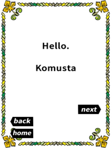 Simply touch each term or phrase to hear the term or phrase spoken in English and Ilocano. The Ilocano translation is repeated twice (the second time more slowly) to help students understand the pronunciation of each term or phrase.
