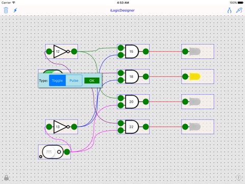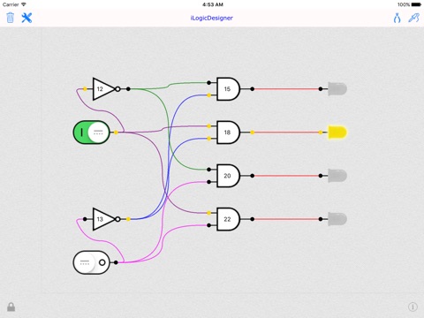 The app based on basic digital building blocks, logic gates. No knowledge of logic gates or digital circuits is required.