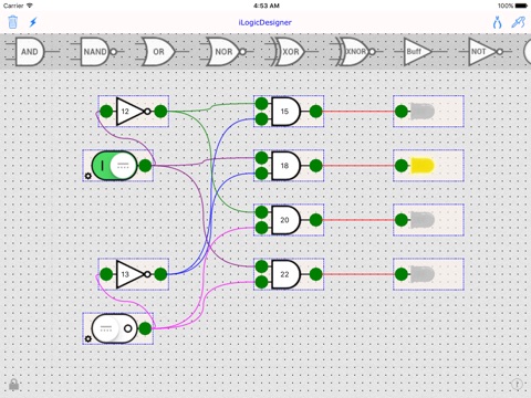 The app based on basic digital building blocks, logic gates. No knowledge of logic gates or digital circuits is required.