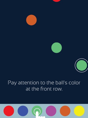 There are different color balls falling and you have to be aware of the color at the front row, then tap on the ball at the equivalent at the bottom of the scene.