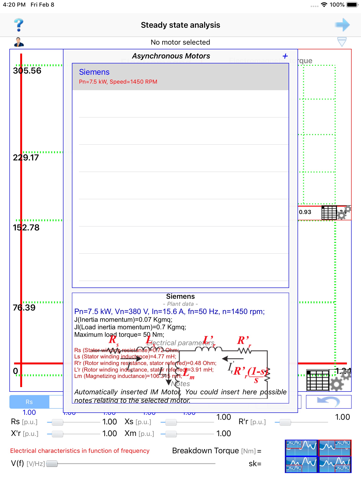 This tool allows to examine fundamental characteristics, performing analysis both in steady-state and in transient state conditions, of a three phase induction motor.