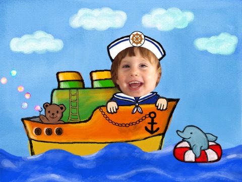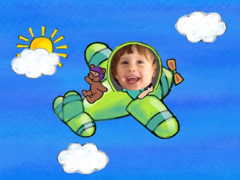 By selecting a photo from your photo gallery, you can create a one of a kind app featuring your child. Whether riding a tractor, flying an airplane, sailing a ship or diving in a submarine - kids of all ages will enjoy watching themselves taking an active part in this magical trip.