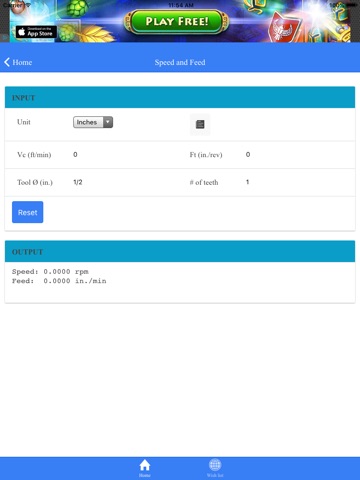 iMachining is an utility to support machinists in their everyday calculation. Currently we support Speeds and Feeds calculations. We will add more features in the near future.