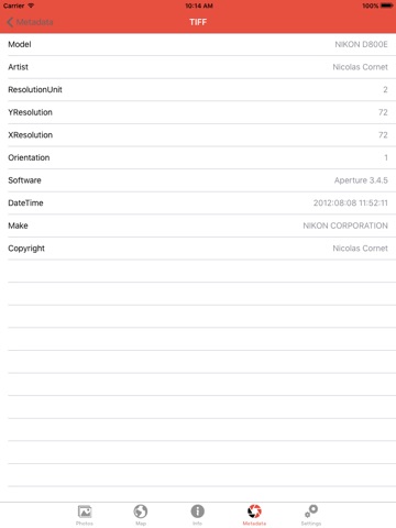 Image Metadata is a simple and clean viewer for photo metadata such as file size, camera model, ISO, shutter speed, location and more.