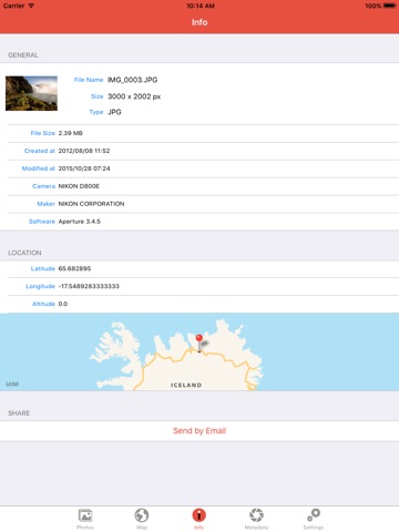 - Share the metadata information with your photo by email.