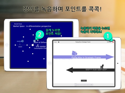 When you want to mark the important point of the lecture, point your finger on the screen and long-tap, which will make a marker that will memorize the moment for you!