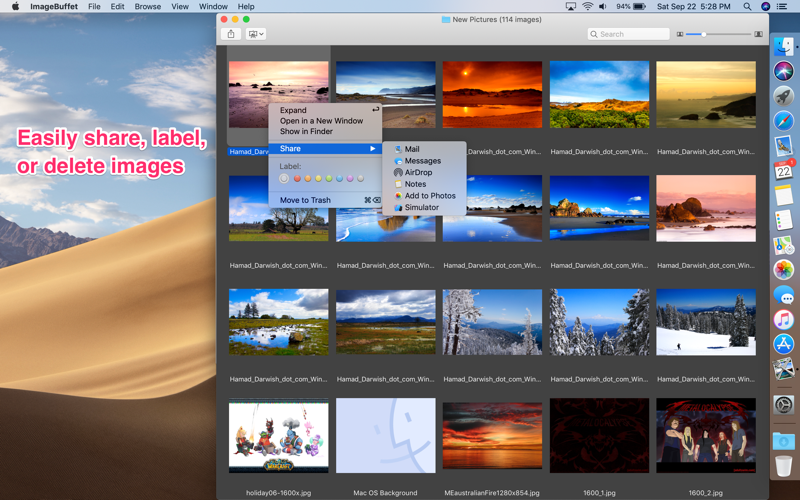 You can very easily assign Finder labels to image files, copy them, or move them to the Trash. You can also easily import images into Photos, share them via various social networks, or view them as a slide show.