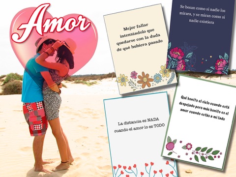 These cards are perfect love to surprise your boyfriend or your girlfriend, your true love, who makes your heart beat or arrest that guy or girl you like. If you are not good to create words or phrases of love or love to write poems or poems of love, we make it easy with our new application with the best texts of love. It is also perfect to compliment your partner on your special day, wedding anniversary or the February 14, Valentines Day.