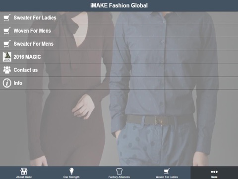 About WeMake, Our Strength, Factory Alliances, Fashion Collections, Woven For Ladies, Sweater, Cut & Sewn knit For Ladies and Mens, Contact us, apparel suppliers, contemporary fashion, on line shops, direct factory