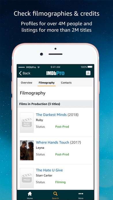 Find contact and representation details, access in-development titles, explore the most comprehensive database of filmographies and credits, and use IMDbPro Track to follow people and titles and never miss an industry update. The IMDbPro app is exclusively available to active IMDbPro members.