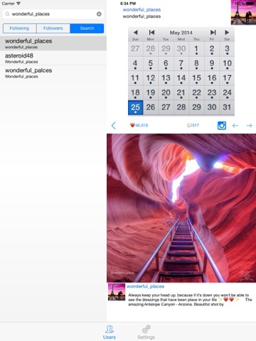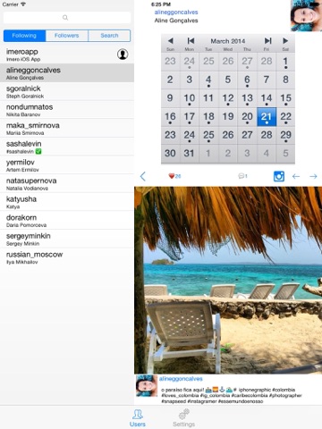 Imero for Instagram allows viewing posts of any Instagram user made on selected date or month. It is now easy to find old posts of selected user, first posts or posts made for example on Cristmass, Halloween and Birthday. Imero displays Calendar view for every selected user and marks days when posts were made. Navigating Instagram user posts history is very easy and comfortable with our app.