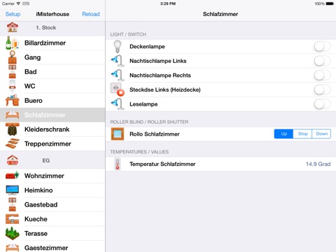 IMisterhouse has been developed for iPad and optimized for Retina. If you forward me your suggestions for improvements or changes, I can try to bring these into the next updates. Should you encounter problems with installation or the objects displayed, just send me an email with a screen shot and your source code data from Misterhouse. Due to the fact that Misterhouse has many different types of objects, I cannot guarantee that they will all be displayed correctly. Please let me know if you have any difficulties and I will try to correct the relevant object type in the next version.