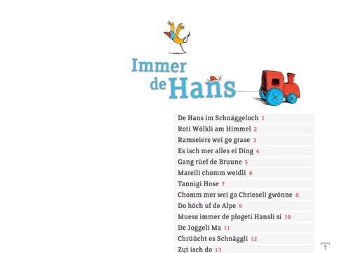 Liedersammlung «Immer de Hans» zum Anhören, Entdecken und Mitsingen.