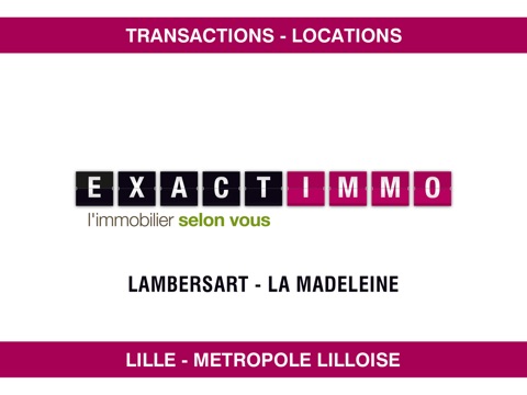 EXACTIMMO vous propose des annonces immobilières à Lambersart, La Madeleine mais également la ville de Lille ainsi que les communes de proximité : Marquette lez Lille, Saint André lez Lille, Lomme, Wambrechies, Marcq en Baroeul, Mons en Baroeul, Croix, Villeneuve d’ascq, Mouvaux, Roubaix, Tourcoing…..