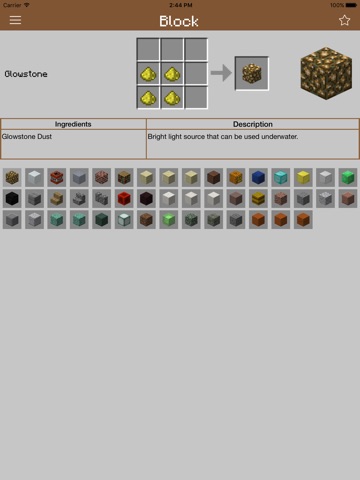 - Look up hundreds of item recipes with detailed information