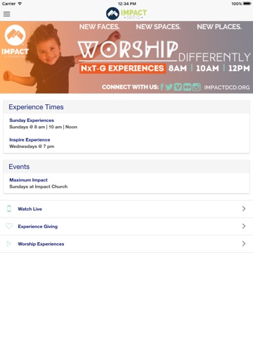 An app for Impact Churchs NxT-G that allows people to view experiences, bible, and events.