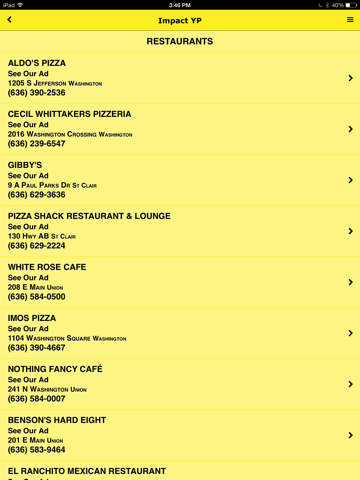 Impact Directories Yellow Pages app. All of our directories are available from one app. Search by name, classification, or reverse phone. Business listings include maps and links for directions from your navigation app.