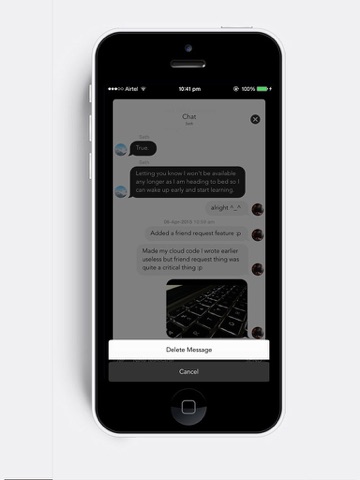 • Photos, location, push notifications, friend requests and every feature a messaging app requires.