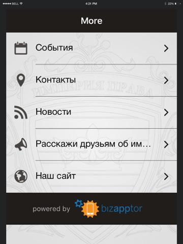 Приложение от компании юридических и бухгалтерских услуг «ИМПЕРИЯ ПРАВА». С его помощью Вы можете получить актуальную информацию о доступных услугах, а также оперативно связаться с опытными юристами и проконсультироваться по телефону (или отправить сообщение на e-mail) через приложение.