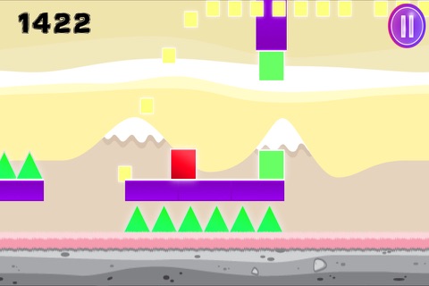 Tap the screen to make the red box bounce on obstacles and over spikes land on a green spikes or green box will pop and your run will come to an end.