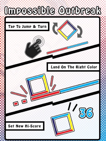 Tap To Jump and turn the square. Match the Color of the square with the color of the line. Its simple, yet very challenging!