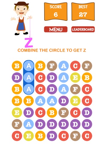 Click the circle with same letter, and they will pop up. Click again to merge them together. Enjoy it and try to get Z
