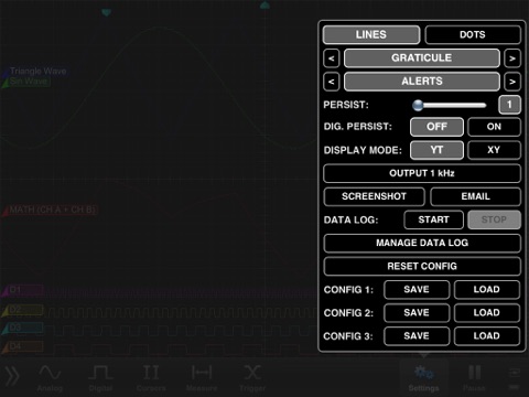 - Its the first mixed signal oscilloscope available in the app store (50MSPS / 5MHz)