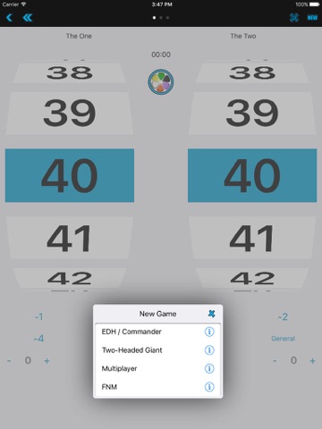 Among the standard modules, Life Counter tool supports portrait and landscape modes. It has up to 24 seats multiplayer mode, Commander damage tracking and separate poison counters for 2-Headed Giant team. Multiple iMtG Life Counters can be linked and synchronised over Bluetooth nearby networking.