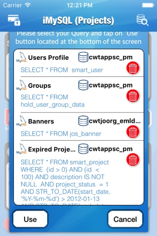 MySQL (FREE) Connects to Any MySQL Database AnyWhere. The App avails unlimited connection to a wide variety of MySQL database servers over the TCP/IP network using standard protocols. iMySQL (FREE) App allows to execute commands with the help of basic SQL syntax selection and view the results in a fully scrollable JSON. Save commonly used SQL statements and review the history of SQL statements executed .