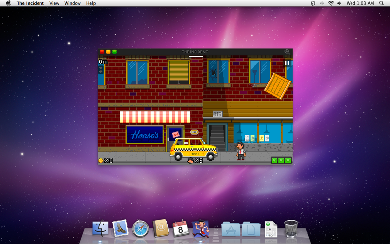 THE INCIDENT is a fast-paced, retro-style action game. Run, dodge and jump your way to safety as an angry rain of just about everything in the world falls and builds a mountain of platforms for you to climb up, up… up to the source of it all: the cause of THE INCIDENT.