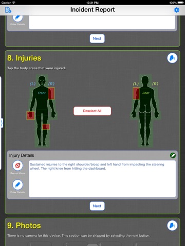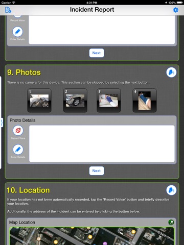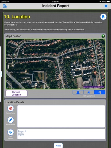 An easy way of reporting an incident. The app selections and inputs will populate a pdf report, detailing the date/time, causes, outcomes, locations etc on “injuries, deaths or near misses”. In addition to making selections, there are added features which allow you to type in further details as well as save voice recordings. The app has been designed with a simple workflow to guide reporters through the key steps required to record and generate important information, documenting an incident adequately. In addition to this, the audio features allow illiterate persons to make use of the app simply by having the instructions read out to them in English or French. The location of the incident can be determined automatically, with the option of various map types, alternatively if recording the location is an issue due to poor signal, the details of the address/location/site/project can be typed in manually.