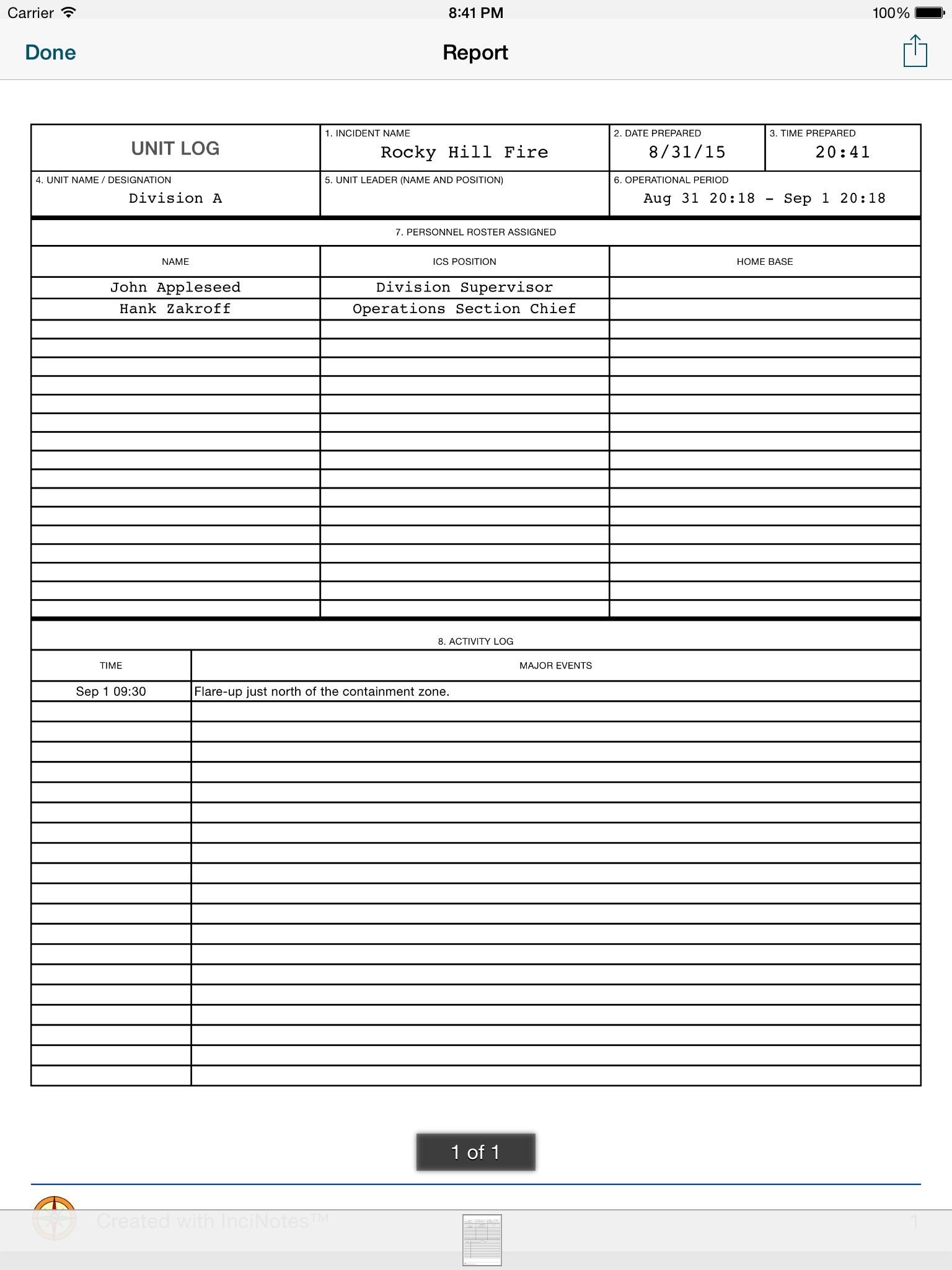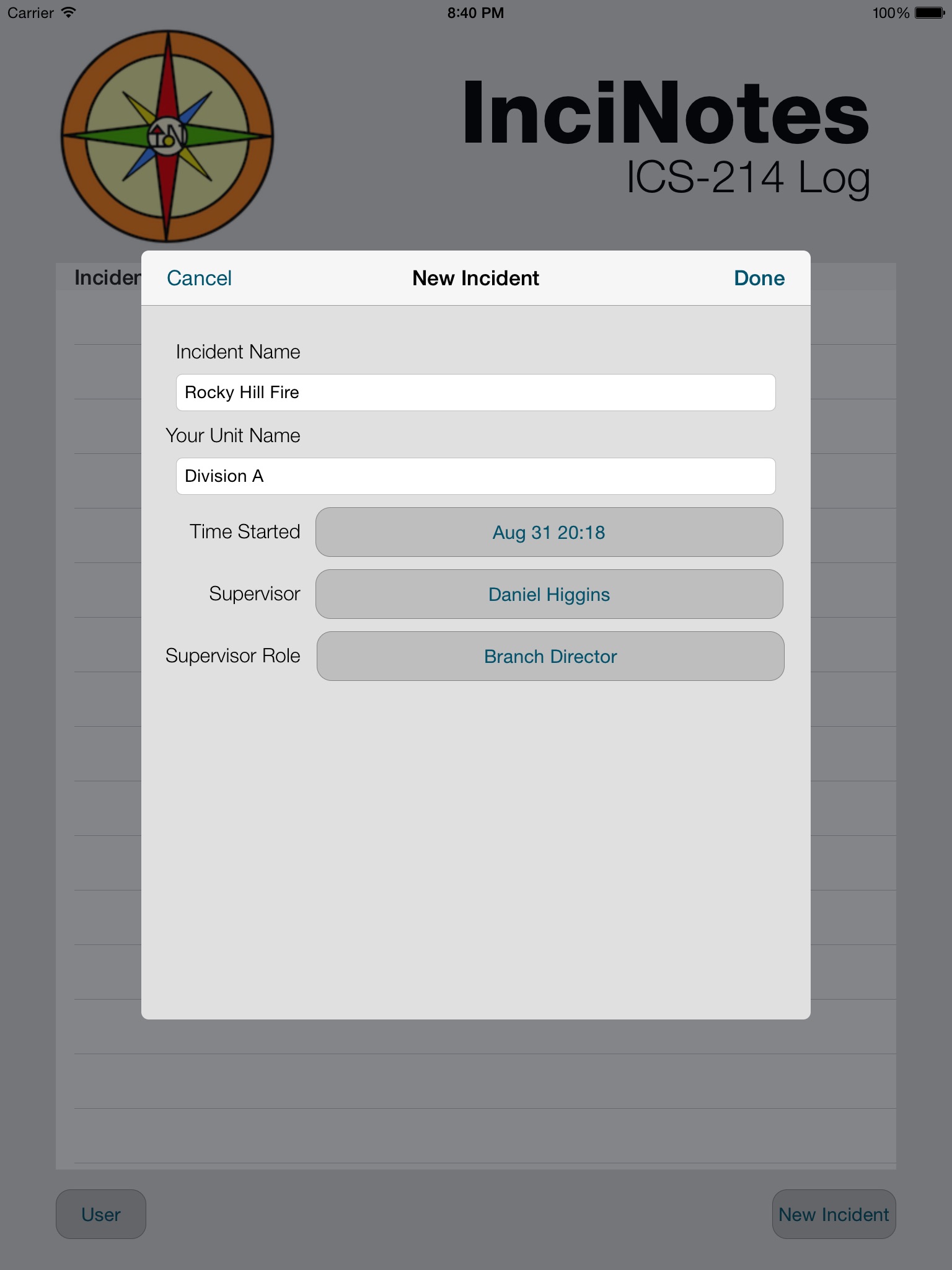 InciNotes is the only app specifically designed for ICS 201 documentation, and now the same breakthrough technology is available for team leaders, making ICS 214 documentation simple and easy. InciNotes ICS 214 simplifies the documentation process for all critical and non-critical aspects of an incident, using your iPhone or iPad.