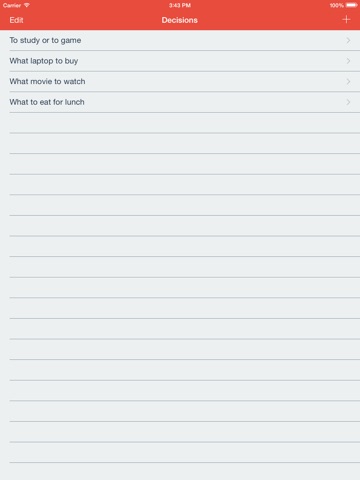 With the Indecisive app, youll never have to worry again. By allowing you to objectively evaluate and analyze each choice, making the best choice is easy.