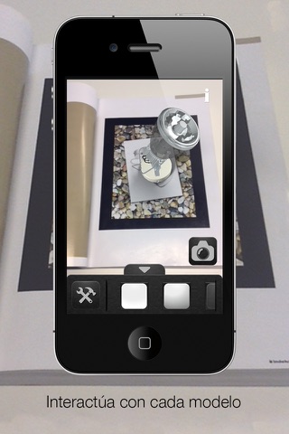 Apuntando con el dispositivo a las páginas del catálogo o marcadores correspondientes (que deberás imprimir en: http://www.pangeareality.com/markers_indeluz.pdf ) aparecerán los productos aumentados y se puede interactuar con ellos de distintas formas:
