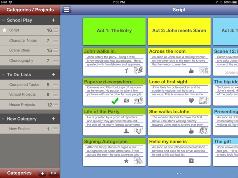 11. Category and Project organization: Each Screen of cards is a project, you can have multiple Categories holding as many projects as you like.