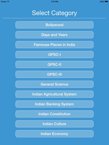 Then this is the best application which has various categories including Bollywood, Days & Years, Famous Places in India, Competitive Exam GPSC, General Science, Indian Agriculture, Banking, Constitution, Culture,Economy, Geography, History, Politics, Sports etc.