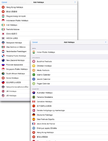 Once added all holidays can be easily edited, deleted or shifted to another calendar and synced with iCal, Google, Outlook, iCloud, etc