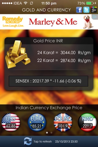 A Free application to get updates rate of Gold and all major currencies over the globe.