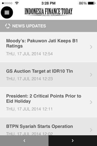 Indonesia Finance Today (IFT) is a mobile app for digital media which focus on provision of information, data and analysis of the financial and capital markets in Indonesia. Indonesia FInance Today (IFT) present information and in-depth analysis with the high quality journalism standard that is capable of being a reference for decision makers.