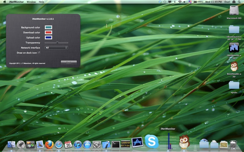 iNetMonitor is an utility for the up- and download speed measurements on your Mac. It draws a histogram chart for the better visual network activity monitoring and calculates the current traffic speed updated every second. It could be useful when you want to check up your overall downloading rate, etc.